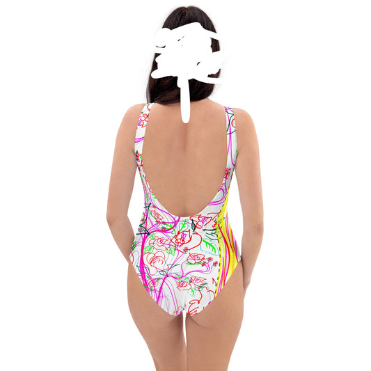 'smell the roses in every dimension' recycled one-piece swimsuit