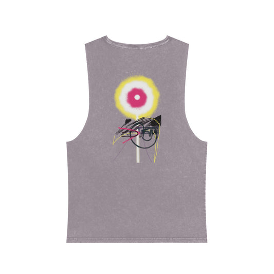 'a trench coat of sunshine' unisex 100% cotton muscle tank in 4 stonewash colours