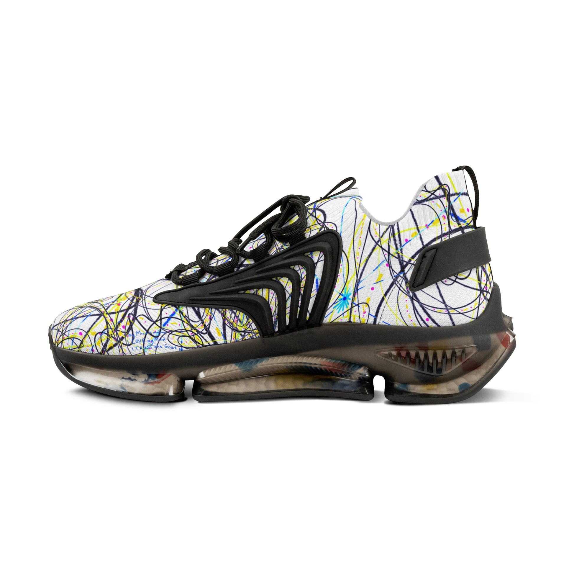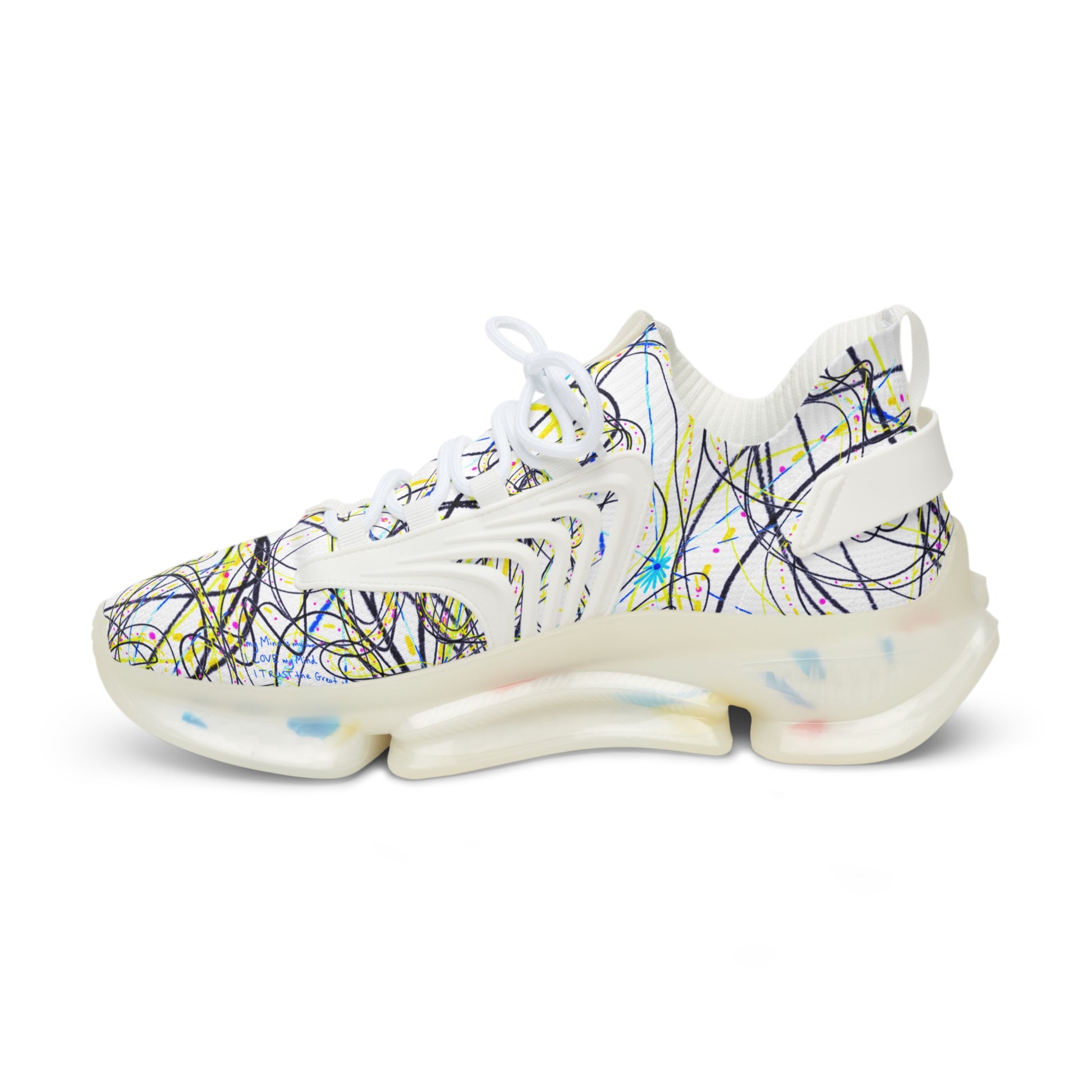 'KEEP YOUR PANTS ON' men's white sneakers with white & black detailing