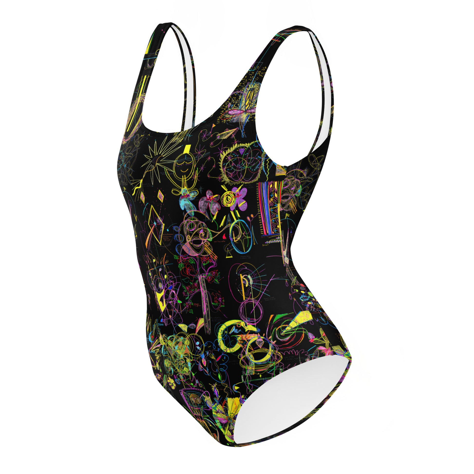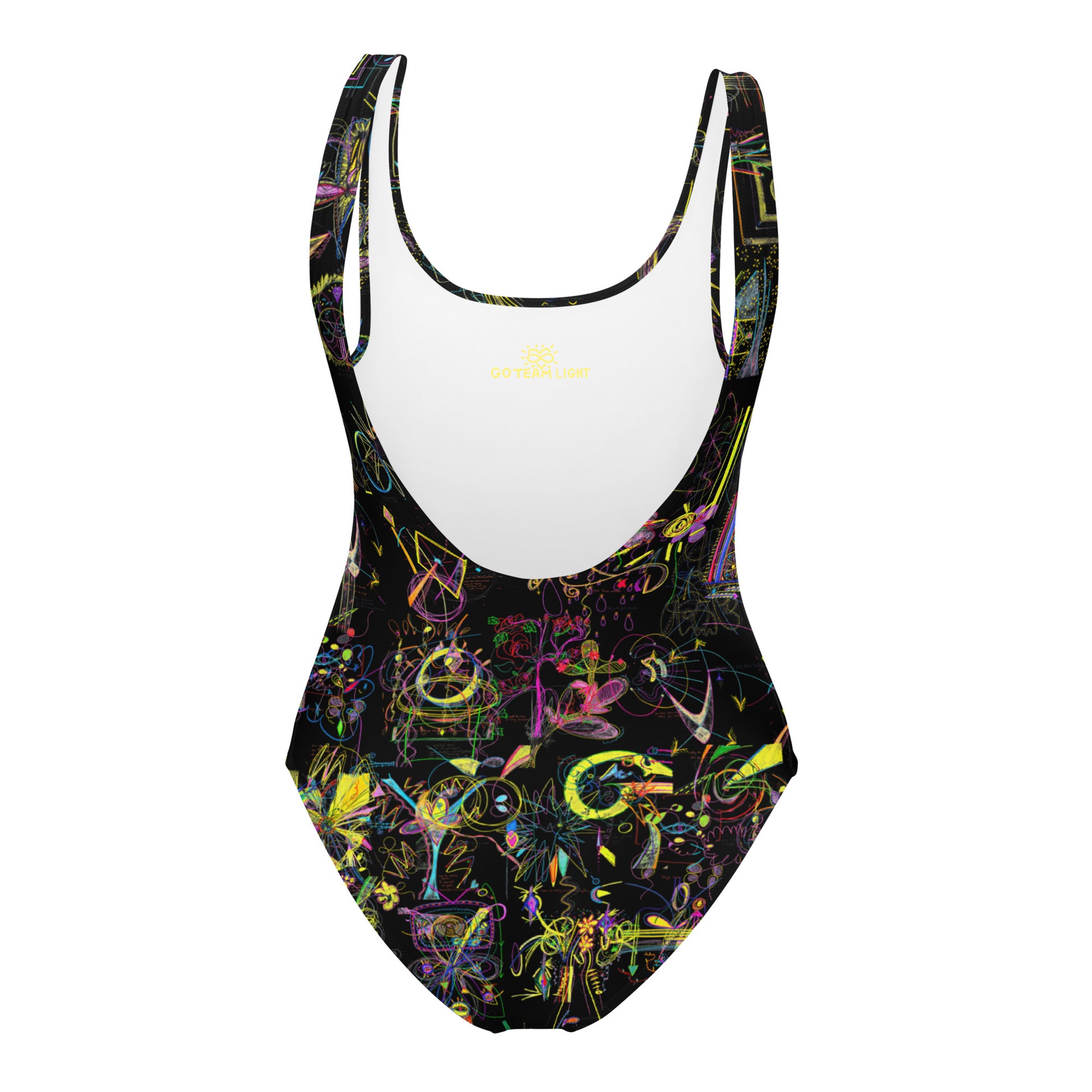 'the day she remembered HER POWER' one-piece swimsuit in black
